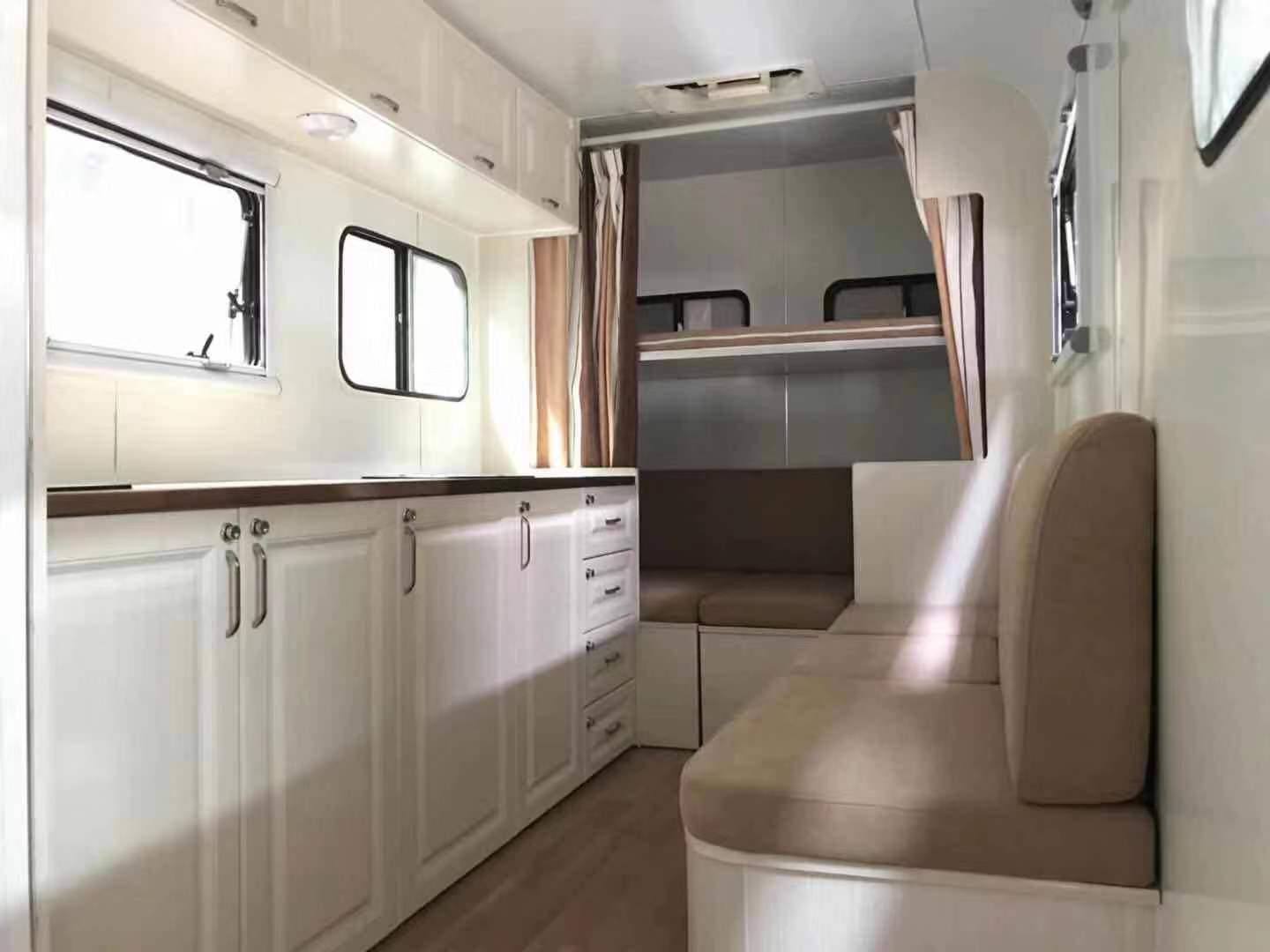 車內寬敞而豪華,具備各種家具、車載家用電器、儲存柜、桌椅沙發等,面積一般可達40平米左右,洗碗機、全自動洗衣機、烘干機、房車專用水箱、整體浴室、衛星天線、暖冷系統、網絡系統、電話機、傳真機、GPS、視聽娛樂設備、倒車監視系統、防撞車警報系統、安全報警系統、我游房車將其分類等應有盡有。
